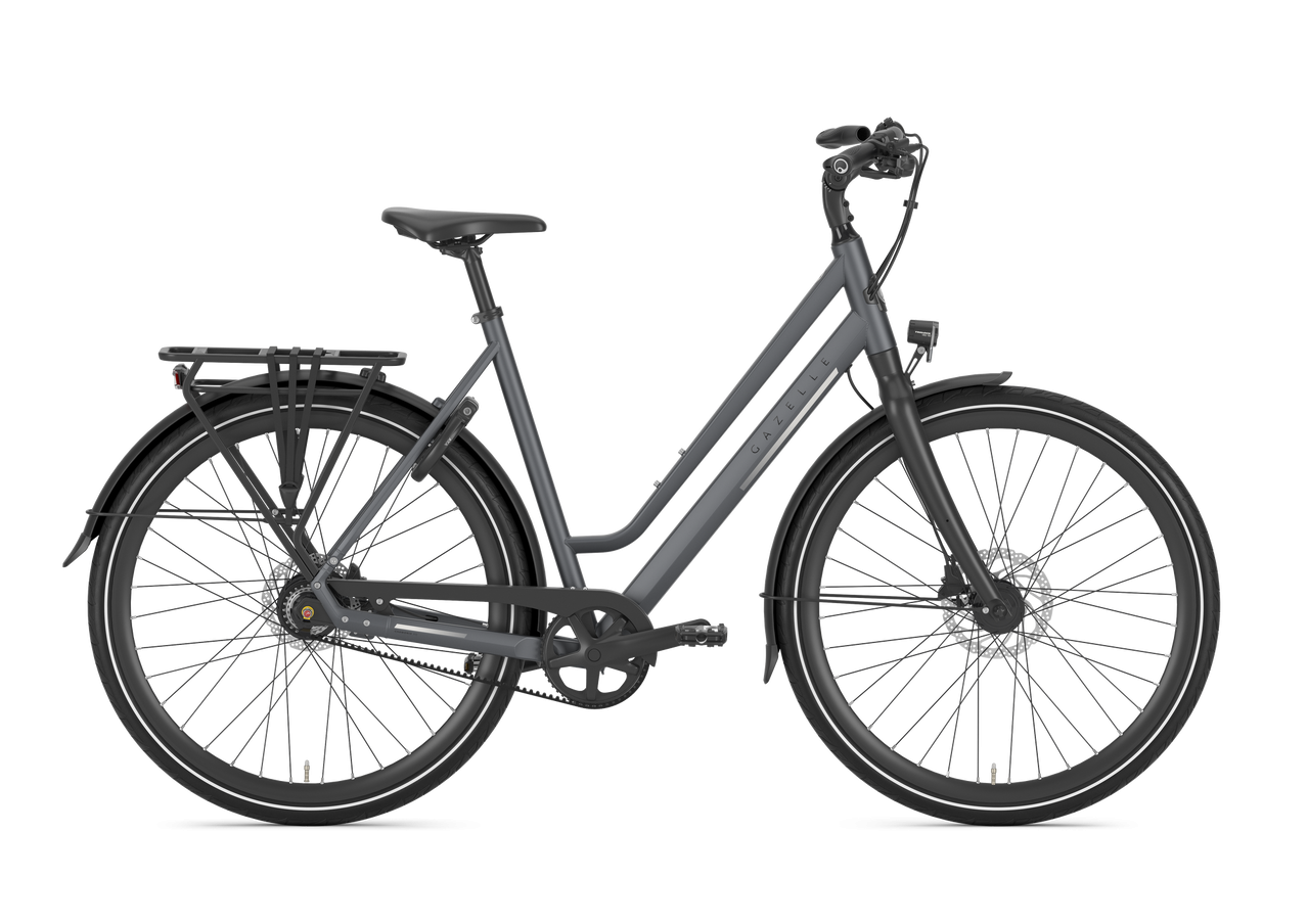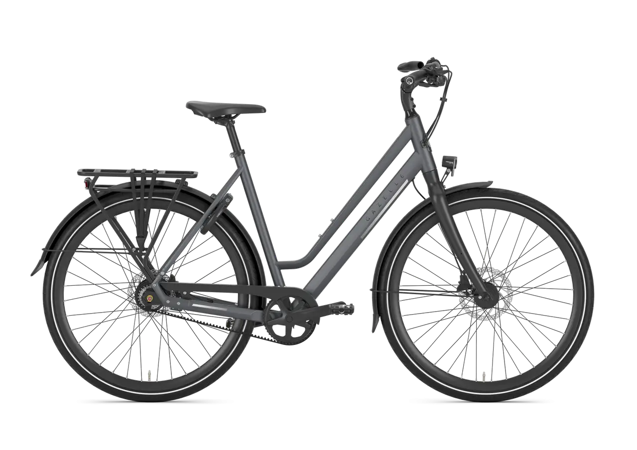 De Gazelle Chamonix S11 lage instap 2024 in Cloud Grey Mat combineert een eigentijdse uitstraling met 11 versnellingsmogelijkheden en een comfortabele 28 inch wielmaat, ideaal voor ontspannen stadsritten met persoonlijke service in Deventer.