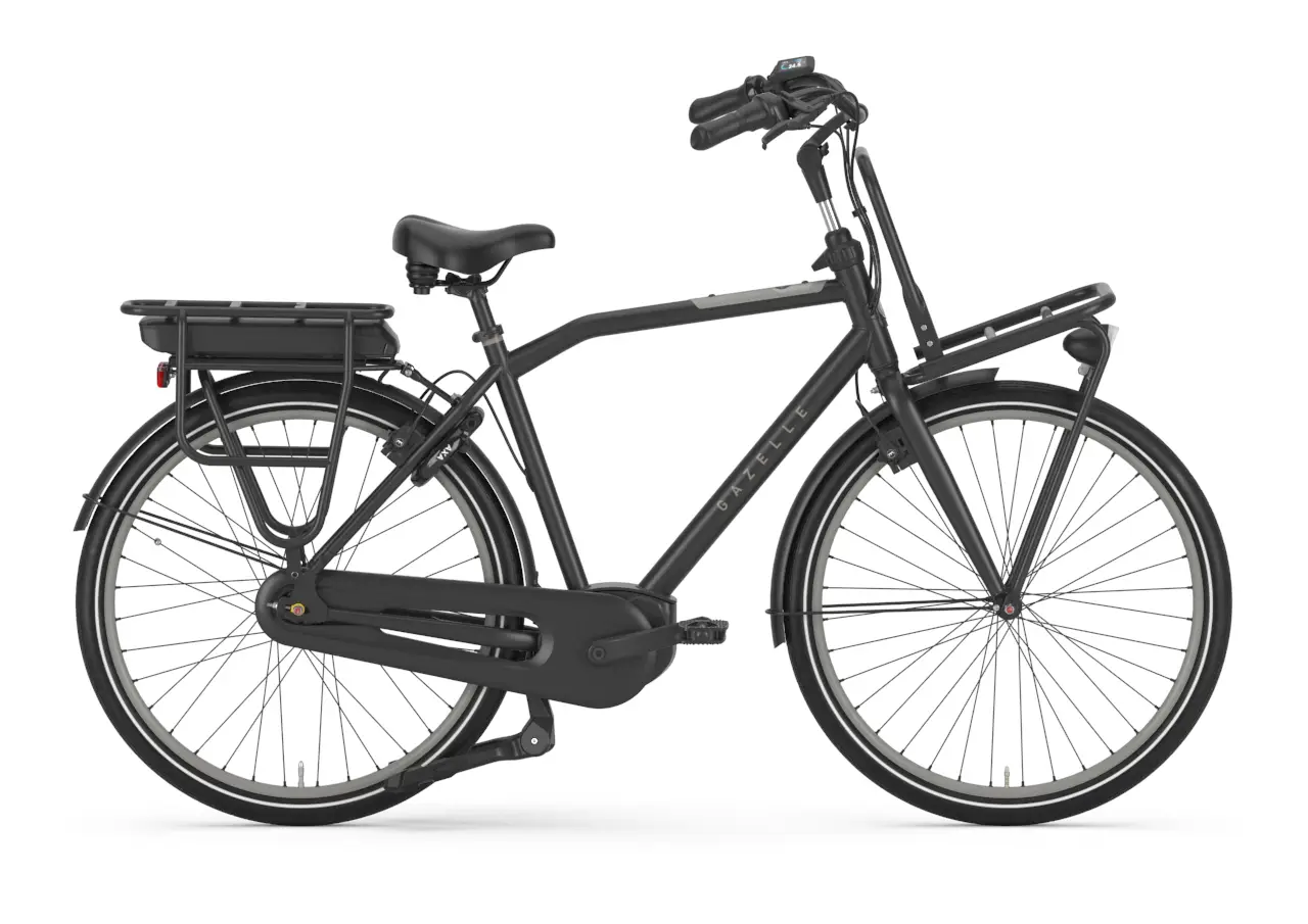 De Gazelle Heavy Duty C7 Heren combineert een stoer uiterlijk met hoogwaardige technische specificaties die zorgen voor een betrouwbare en aangename rijervaring. Het zwarte matte frame geeft de fiets een tijdloze en elegante uitstraling, perfect voor dagelijks gebruik in de stad en daarbuiten.