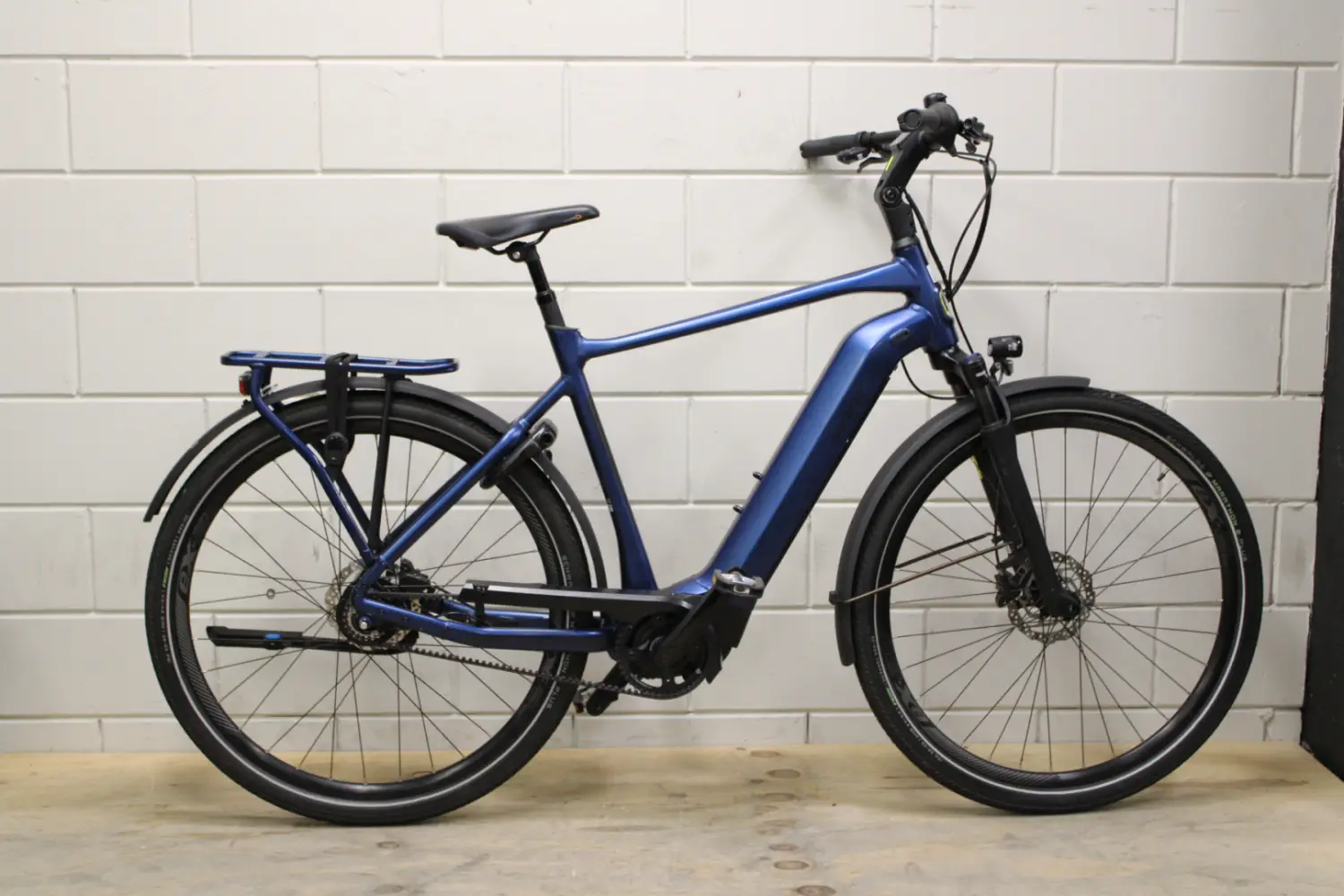 De Giant DailyTour E+ 1 Belt in metallic navy met een comfortabele maat L is een krachtige e-bike met een stille Yamaha motor van 50nm, 8 versnellingen van Shimano Nexus, een royale 625Wh accu en fijne voorvork- en zadelvering voor optimaal rijcomfort.