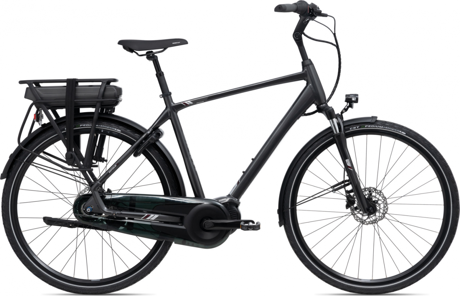 De Giant Entour E+ 0 Heren 2023 in Gunmetal Black is een elegante en krachtige e-bike met een middenmotor van Yamaha, acht Shimano Nexus-naafversnellingen en hydraulische schijfremmen, die garant staat voor comfortabele en betrouwbare ritten in de regio.