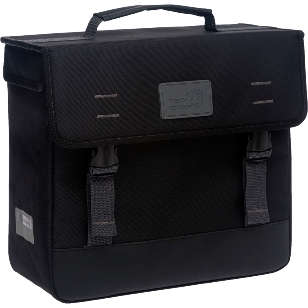 De New Looxs pakaftas Origin black combineert een stijlvol zwart design met praktische hakenbevestiging en een royale inhoud van 17 liter, perfect voor dagelijks gebruik en het eenvoudig meenemen van uw spullen op de fiets.